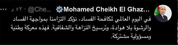 وكتب والرئيس غزواني: “في اليوم العالمي لمكافحة الفساد، نؤكد التزامنا بمواجهة الفساد والرشوة بلا هوادة، وترسيخ النزاهة والشفافية.