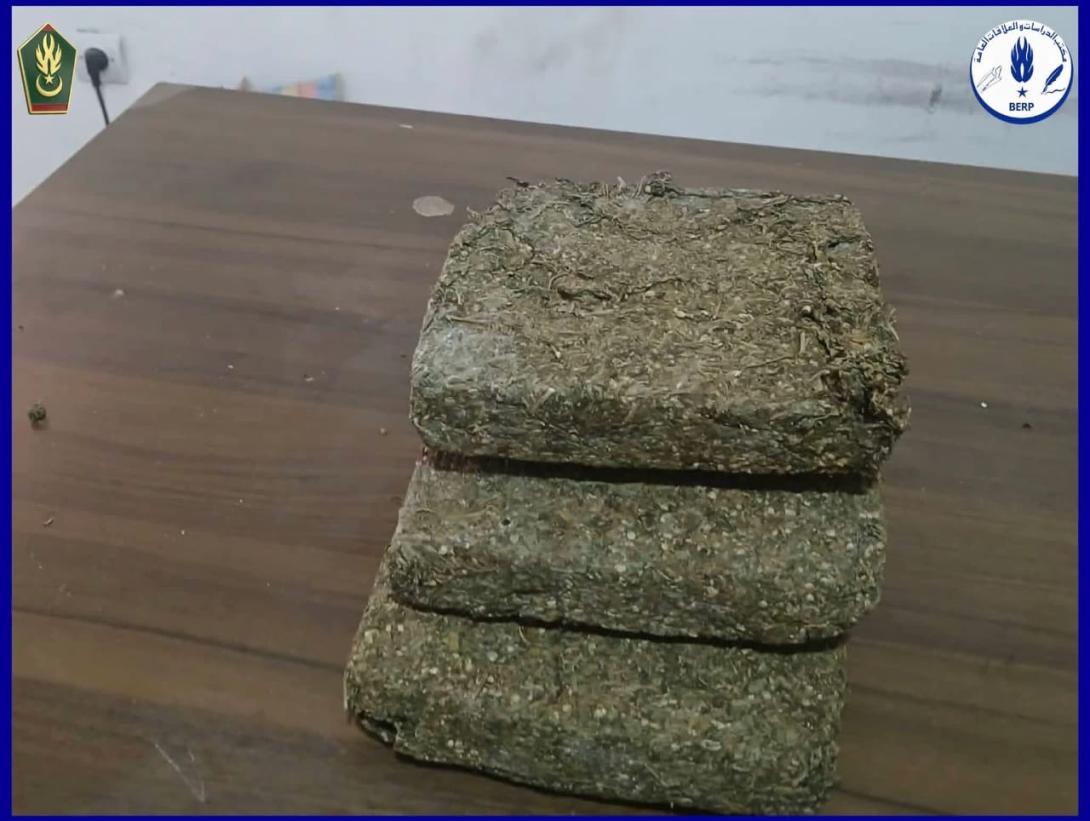 وأوضح الدرك، في بيان، أن العملية أسفرت عن توقيف شخص أجنبي كان على متن شاحنة لنقل البضائع، حيث عُثر بحوزته على 2.3 كيلوغرام من القنب الهندي، كانت مخبأة بإحكام داخل كيس ومغلفة بلفافات بلاستيكية.