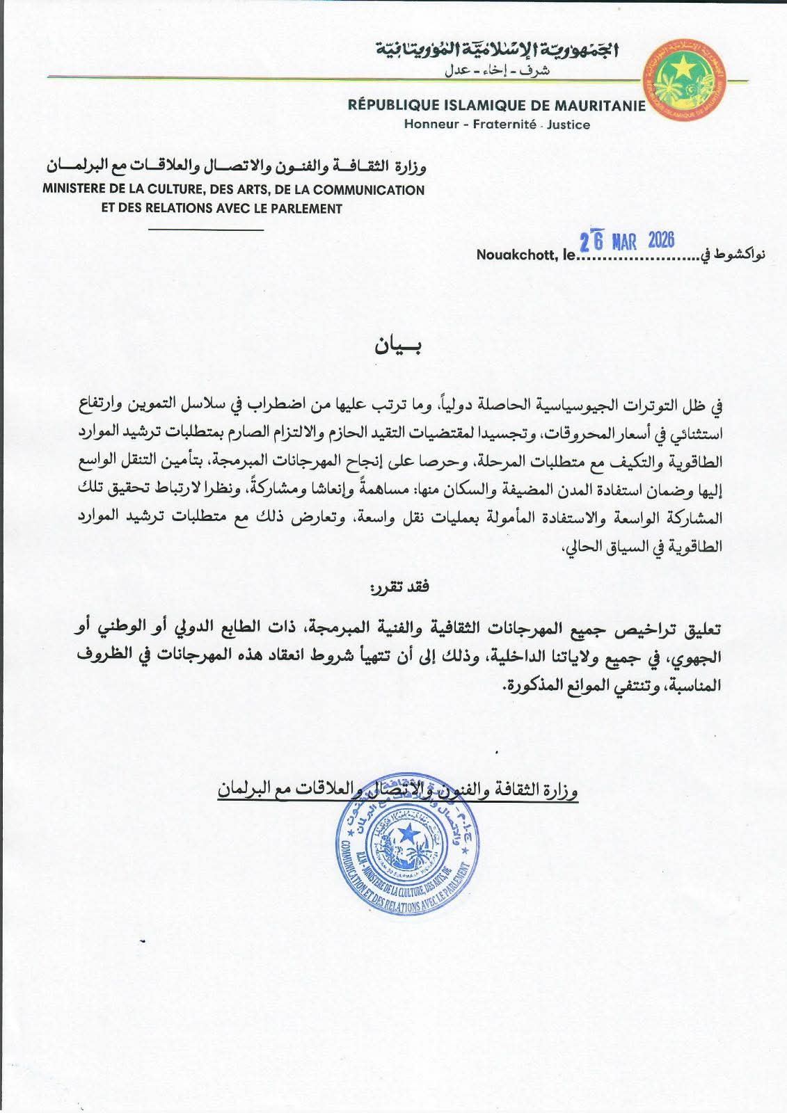 قال الوزير الأول المختار ولد اجاي، إن الحكومة ستواصل اليقظة وتعزيز آليات الرقابة لضمان استقرار تموين السوق ومواجهة المضاربات، في ظل التوترات الجيوسياسية وتقلب أسعار المحروقات.