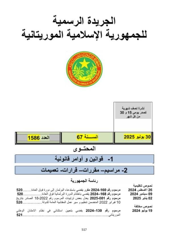 ونُشر المرسوم الجديد في العدد 1586 من الجريدة الرسمية الصادر بتاريخ 30 يوليو 2025.