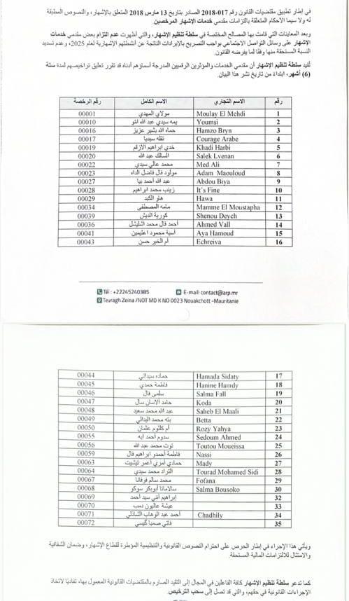 أعلنت سلطة تنظيم الإشهار في موريتانيا تعليق تراخيص 34 من مقدمي خدمات الإشهار والمؤثرين على وسائل التواصل الاجتماعي لمدة ستة أشهر، وذلك بسبب ما وصفته بـ"عدم الالتزام بواجب التصريح بالإيرادات الإعلانية لعام 2025".